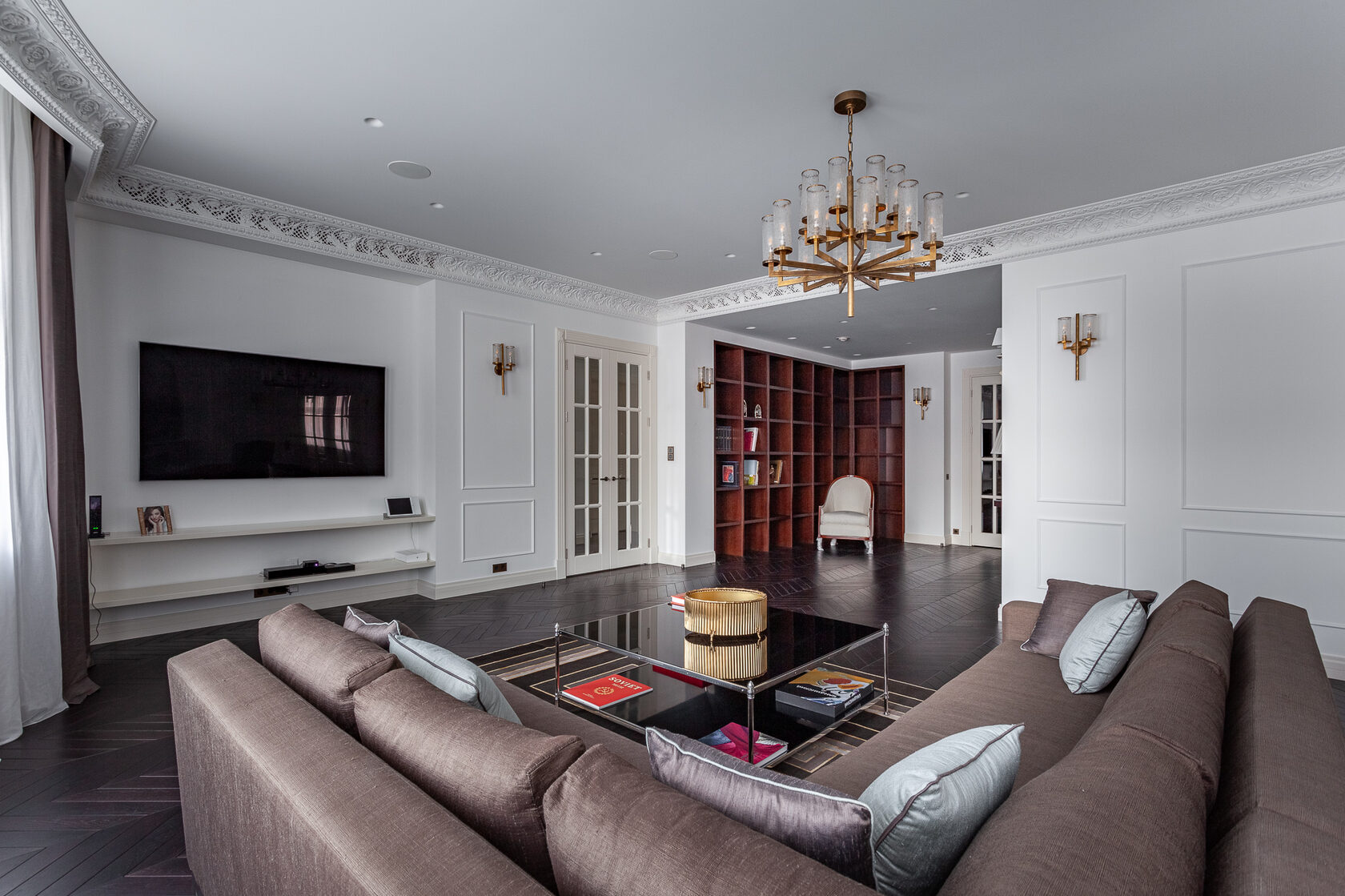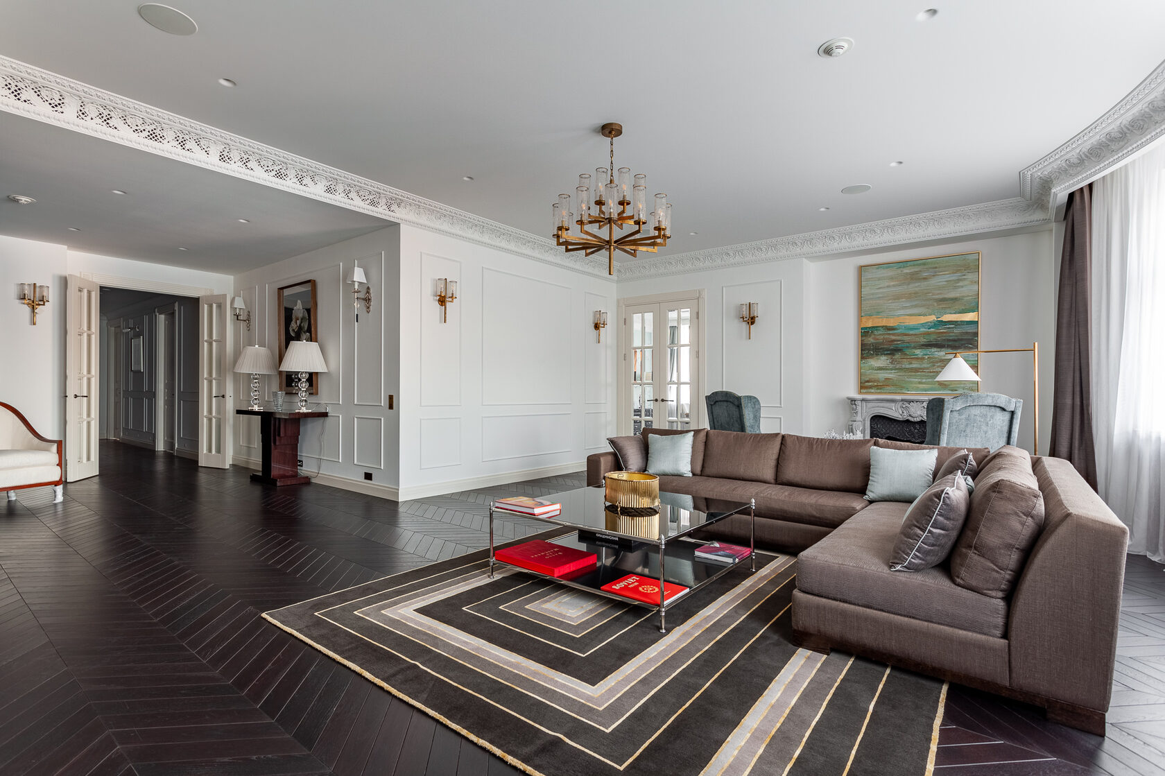 В квартире выполнен элегантный ремонт в стиле современной классики с безукоризненными дизайнерскими элементами. Мебель и декор от мировых брендов, таких как: RALPH LAUREN HOME, Art d’Arnould Epure, Bianco Carrara, Lalique, Bella Figura Hyde Park и другие. Квартира великолепно спланирована и включает кухню, столовую, гостиную, мастер-спальню с двумя гардеробными и ванной комнатой, три спальни с ванными комнатами, постирочную и гостевой санузел. Квартира полностью оборудована и оснащена всем необходимым. Есть два машиноместа в подземном паркинге.